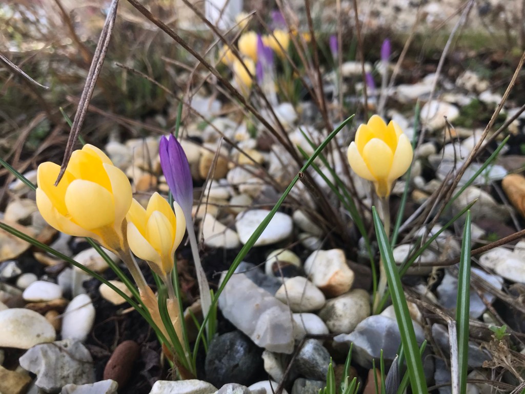 Among crocuses.